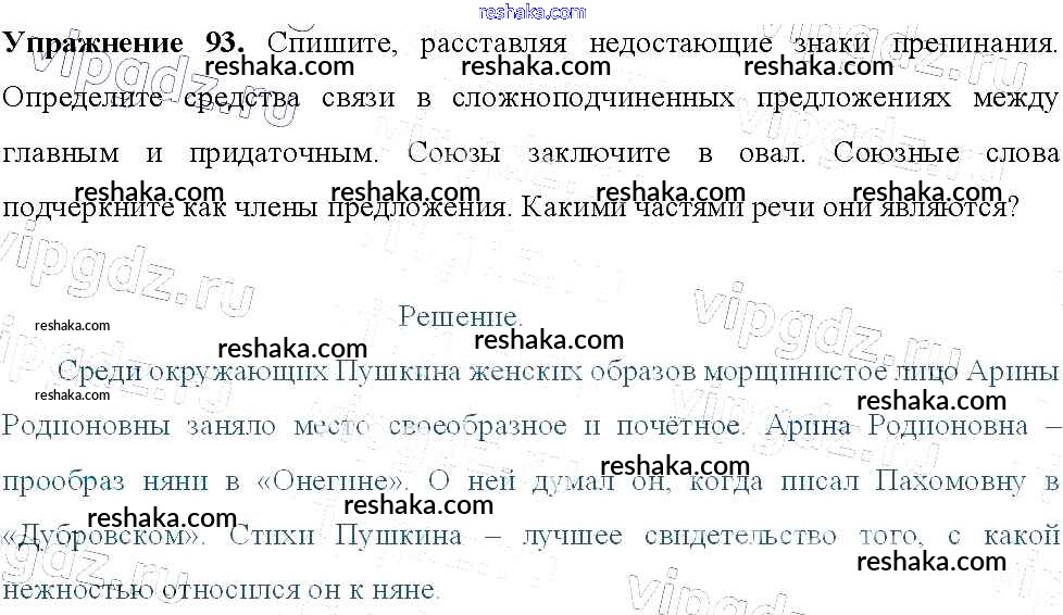 Решака - онлайн ответы Русский язык Тростенцова, Ладыженская за 9 класс Учебник ФГОС 2014 - 93