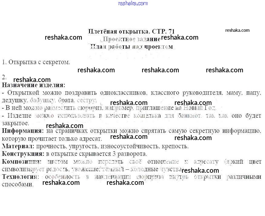 Представляем вам сборники по Технологии, с готовыми ответами к Рабочей тетради Лутцева школьной программы для учеников четвертый класса. Это не просто гдз с ответом, а с подсказками, как верно решить Страницы 71. Проверяй домашку с умом и получай высший балл!