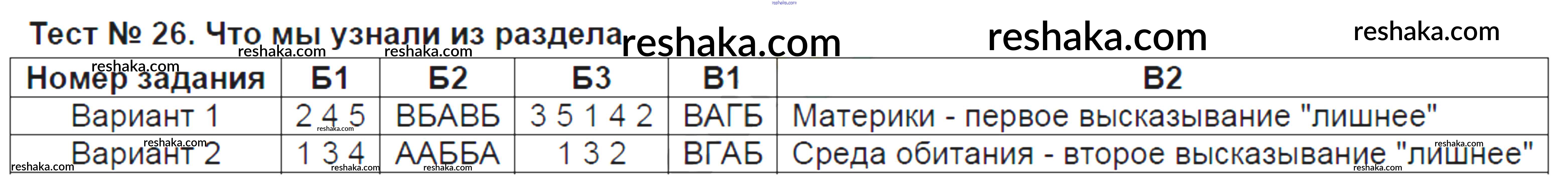 Решака - онлайн ответы Естествознание Воронина за 5 класс Тесты ФГОС 2015 - Тест №26. Что мы узнали из раздела